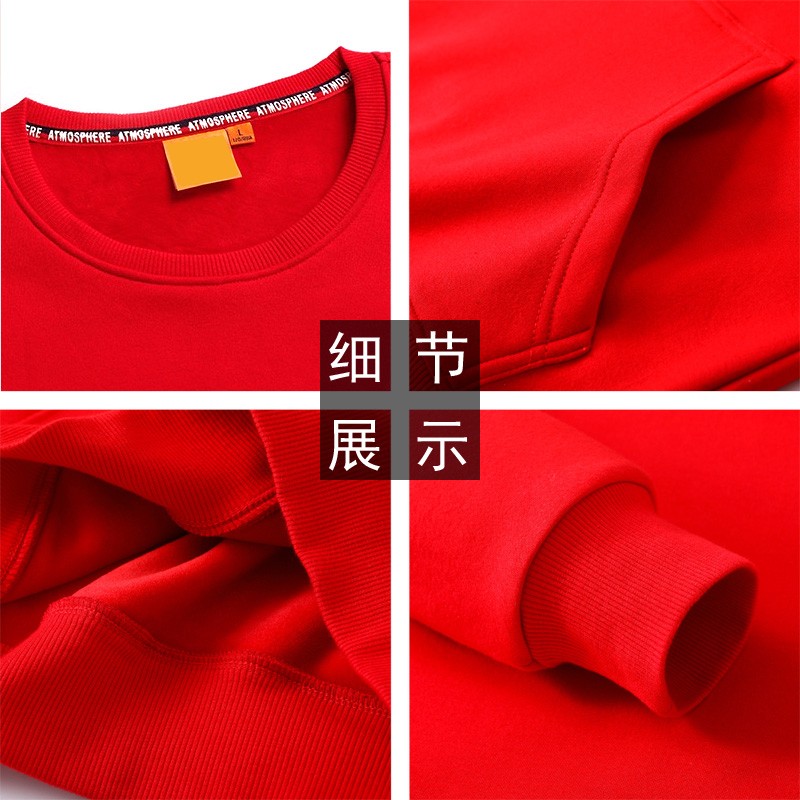 YDWY201212男女同款2021生肖牛年加絨連帽新年紅色衛(wèi)衣定制本命年元旦公司年會印logo